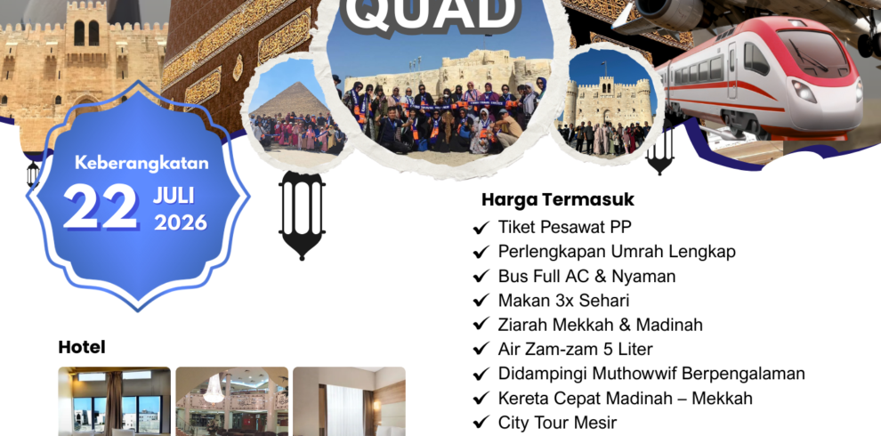 Cairo Travel Service menyediakan beragam program dan paket Umrah yang dirancang untuk memenuhi kebutuhan berbagai kalangan jamaah. Mulai dari Paket Umrah Mahasiswa, Umrah Reguler, hingga berbagai pilihan Umrah Plus seperti Umrah Plus Mesir, Turki, Aqsha, Dubai, Maroko, Uzbekistan, dan Yaman, serta program khusus Umrah Daurah Al-Qur’an. Seluruh paket dapat disesuaikan dengan kebutuhan dan keinginan masing-masing jamaah.